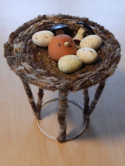 Lampenschirmgestell von Birgit Sauerland Ihr braucht dazu einen alten Lampenschirm (ein neuer Lampenschirm geht auch), von dem ihr den Stoff abnehmt. Jetzt Streben umhäkeln oder umkleben, Querfäden vom Rand zum Fassungsring ziehen. In Runden die Querfäden umweben - so entsteht ein Nest. Dann noch dekorieren und fertig ist eure individuelle Dekoschale. Viel Spaß beim Nachmachen
