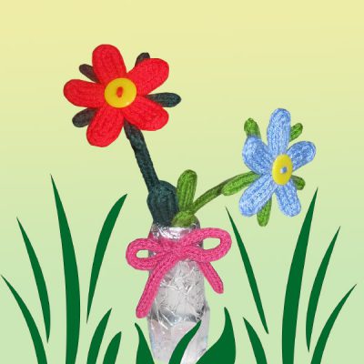 Copyright © Andrea Renz Material: - 1 Strickliesel, - Polygarn oder anders Garn, was sich gut in der Strickliesel verarbeiten läßt, - Knöpfe passend zu der Blütenfarbe, - eine Sticknadel und eine Stricknadel, womit