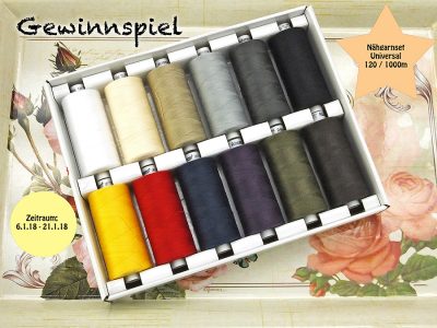 Macht mit bei unserem FB-Gewinnspiel und gewinnt 1 Nähgarnset (wie abgebildet). Alles Weitere erfahrt ihr auf unserem FB Auftritt: Link zu unserer FB-Seite Viel Glück