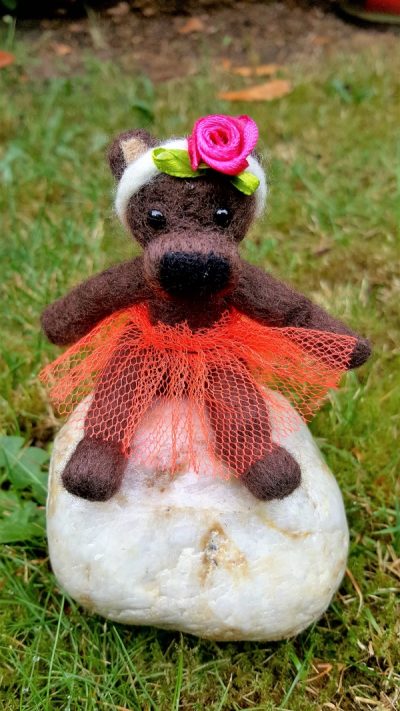 Text und Bilder by Gaby Borchers Hallo 🙂 Heute möchte ich Dir meine kleine (ca. 10 cm groß) Teddy Ballerina vorstellen. Teddybären sind eine große Leidenschaft von mir. In Bremen im Schnoor, ein Viertel mit winzig kleinen Kunsthandwerksläden, gibt es einen Teddyshop, und egal wie oft ich auch schon dort war, mich zieht es immer wieder dorthin und ich kann mich stundenlang in dem winzig kleinen Laden aufhalten und mich an den alten und neuen Teddy´s erfreuen. Da ich leider aus Platzmangel nicht jeden Teddy adoptieren kann, habe ich angefangen, kleine Minibärchen zu filzen.