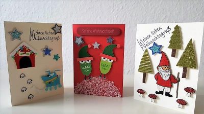 Text und Bilder by Gaby Borchers Heute habe ich ein paar selbgemachte Weihnachtskarten für euch. Auf einer Kreativmesse habe ich eine Technik entdeckt, die mir wirklich sehr gut gefallen hat. Die Motive werden aus Motivstoff ausgeschnitten und auf eine Seite einer doppelseitig klebende Klarsichfolie aufgeklebt, die andere Seite wird zur Verstärkung auf dickes Papier oder Tonkarton geklebt. Jetzt könnt ihr das Motiv genau ausschneiden ohne das der Stoff ausfranst. Nun braucht ihr nur noch die ausgeschnittenen Motive mit 3D-Klebepunkten auf der Karte befestigen. Ich finde den Effekt mit den Stoffmotiven und den 3D-Klebepunkten wirklich toll.