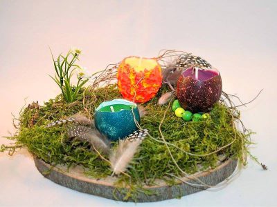 Text und Bild von Gaby Borchers Heute zeigt euch Gaby, wie man aus Eierschalen und Kerzenreste eine schöne Osterdekoration zaubert. Dazu benötigt ihr: leere Eierschalen, Kerzenreste, Teelichtdocht, Farbe und Dekomaterial Ich habe mir Eier der Größe L besorgt, einige habe ich gekocht und gefärbt und vorsichtig ausgelöffelt, von anderen habe ich die Spitze gekappt, den Inhalt herauslaufen lassen, (vorzugsweise in eine Pfanne als Rührei oder für einen Kuchenteig) ausgespült und dann vorsichtig mit Farbe oder Strukturpaste bearbeitet. Die Eier, die ich mit Strukturpaste bearbeitet habe, sind sehr fest und stabil geworden.