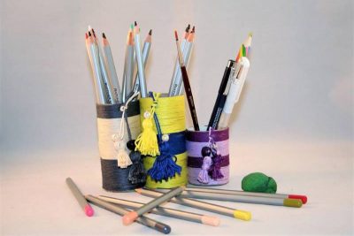 Text und Bilder by Gaby Borchers Heute zeige ich euch, wie ihr mit einfachen Mitteln schöne Stiftehalter zaubern könnt. Dazu benötigt ihr: Klorollen Kleber (Kleister) buntes Garn Holzrührstäbchen oder Zahnstocher