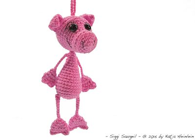 Frohes Neues ihr Lieben. Wir starten das Jahr mit Siggi Saugeil, ein kleiner Glücksbringer. Viel Spaß beim Nacharbeiten. Anleitung Der Taschenbaumler hat eine Größe von ca. 12 cm (19 cm mit Schlaufe) Diese Anleitung stelle ich ausschließlich zur privaten Nutzung zur Verfügung. Diese Anleitung darf ohne meine Zustimmung nicht veröffentlicht, übersetzt, bearbeitet oder verändert werden. Jede kommerzielle Nutzung, insbesondere der Verkauf oder die Verwendung zu Werbezwecken, ist strikt untersagt. Copyright © by Katja Heinlein Material: Baumwollgarn 50g / 125 Meter: je 1 Knäuel rosa Häkelnadel: 1,75 - 2,00 mm 8 mm schwarze Einziehaugen Füllmaterial