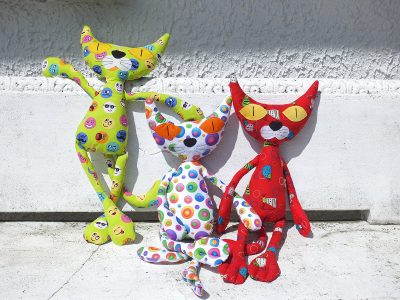 Hallo Ihr Lieben, was sagt Ihr zu meiner 70cm großen Weltraumkatze? Bisher gibt es zwei Reaktionen darauf, cool und doof 🙂 Wenn Ihr zu denjenigen gehört, die meine abstrakte Version einer Katze gut finden, dann ran an die Nähmaschine und los gehts. Ihr braucht Baumwollstoff, Füllung, etwas Stoff zum Applizieren, beidseitiges Bügelvlies, Eure Nähmaschine natürlich und den ganzen Kleinkram, wie Schere, Faden, Nadel usw.